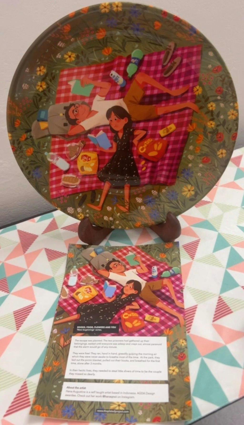 "Each plate comes individually packed in its box: It includes: an acrylic display stand, a pre attached wall hook on the back of the plate (for hanging purposes). It includes an A5 insert card which talks about the artwork & the story behind it & the cause it is raising awareness about. The plate is packed in between a layer of foam to protect it during transportation."