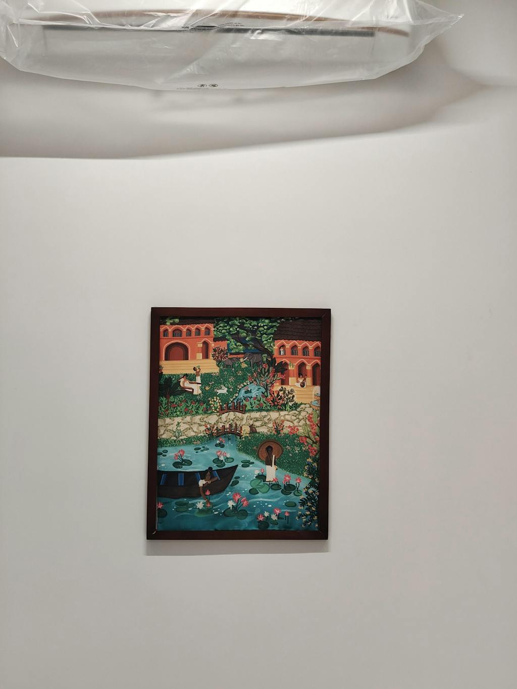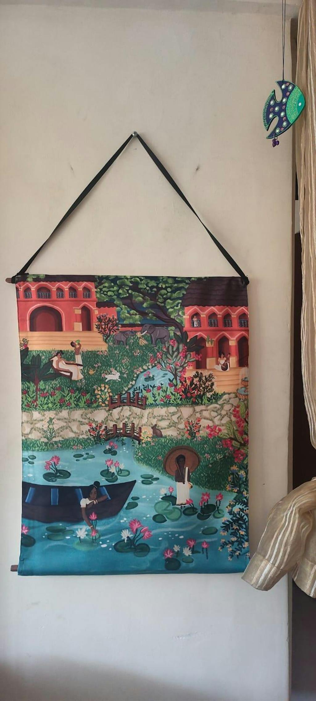 A breeze through banana leaves. A trail of temple bells. This framed fabric artwork travels through Kerala’s coast — one print, many memories.