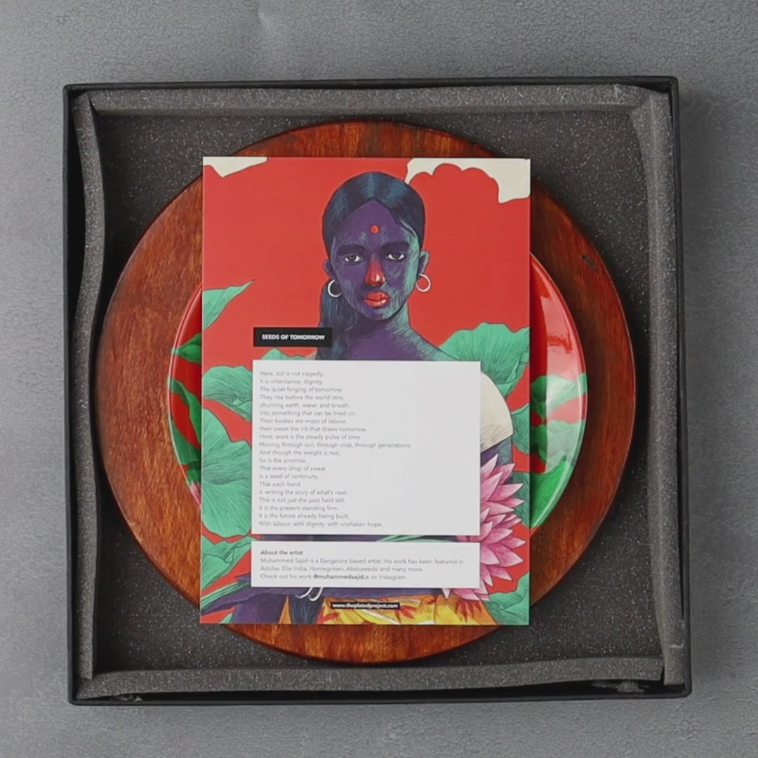 All our decor plates are carefully designed by global artists & each piece comes with a thoughtfully crafted story card that surrounds a social issue. With every plate you buy you will also sponsor at least 10 meals for those in need, fighting the global hunger crisis with art. Indulge in the allure of high-quality ceramic plates digitally printed in high resolution that effortlessly enhances any space. With an easy-to-maintain dust and water repellent coating, preserving their impeccable appearance is a breeze.