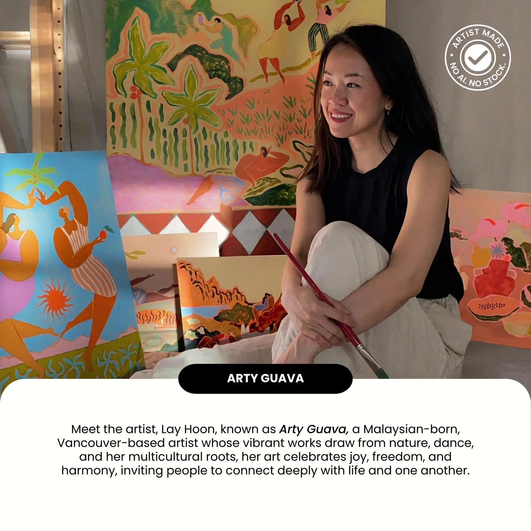 Designed by Arty Guava, a Vancouver-based illustrator whose bold, playful style draws from life’s quiet moments. Crafted in premium metal with enamel finish, this decor panel transforms fleeting motion into lasting story, collectible for your wall, unforgettable as a gift.