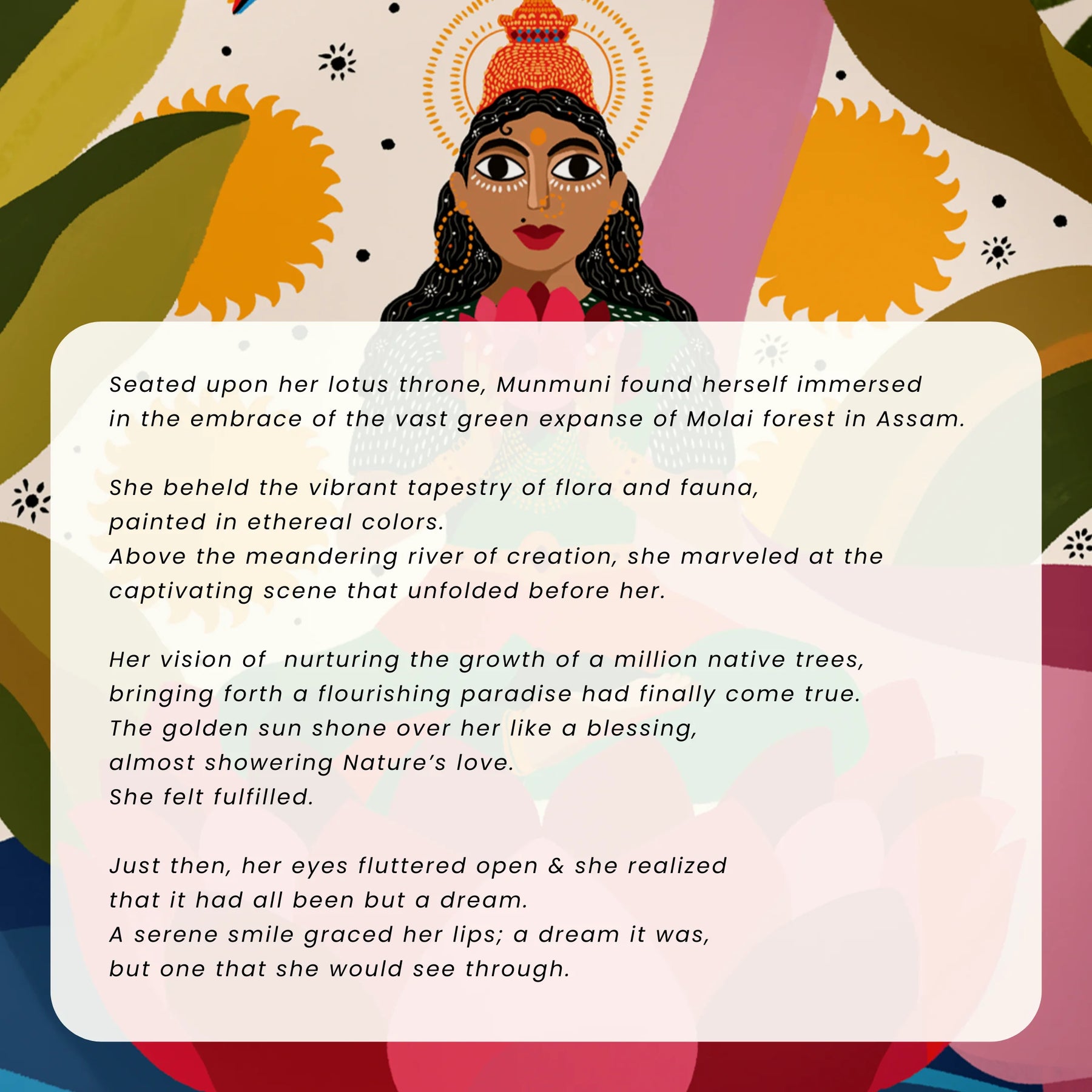 Seated upon her lotus throne, Munmuni found herself immersed in the embrace of the vast green expanse of Molai forest in Assam.