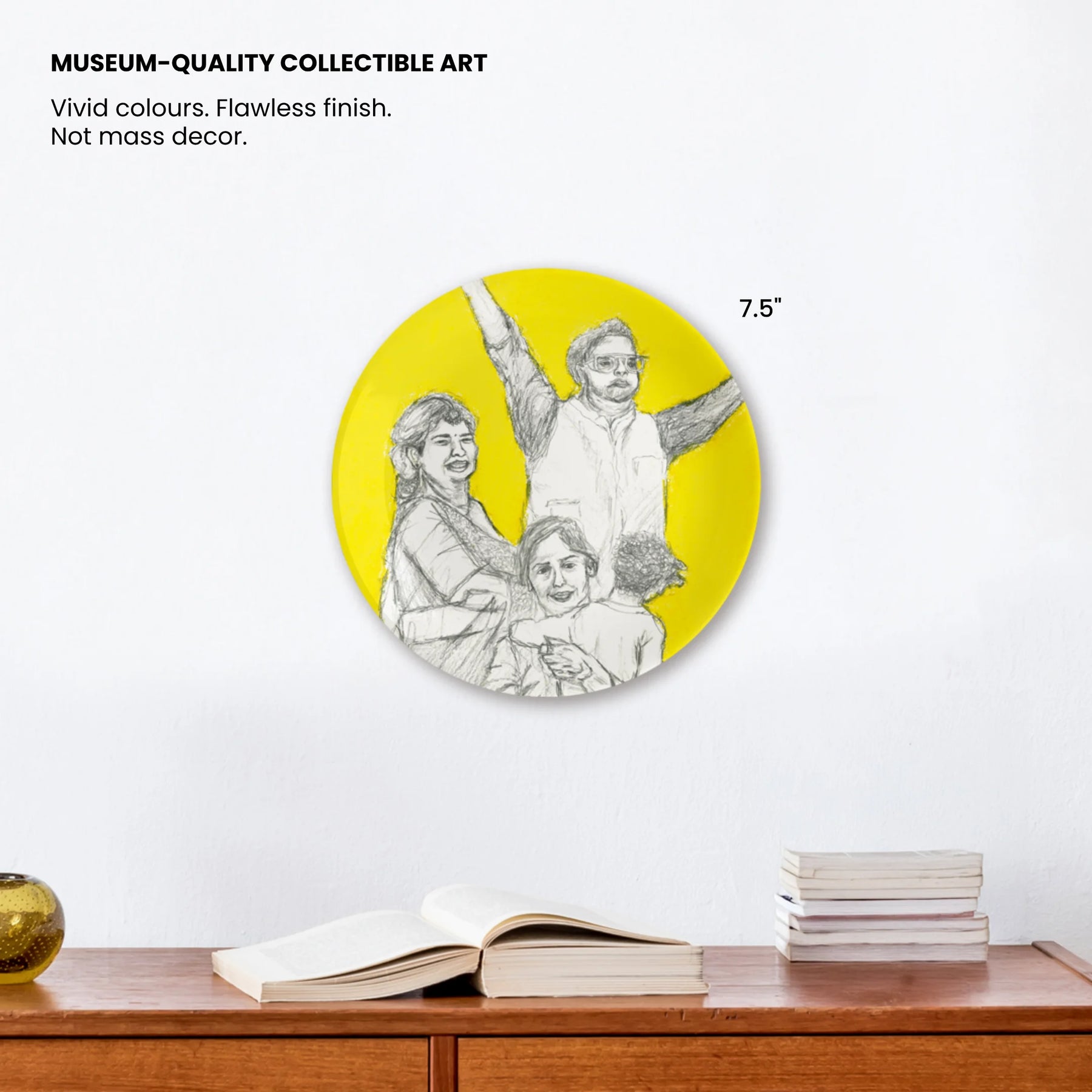 All our decor plates are carefully designed by global artists & each piece comes with a thoughtfully crafted story card that surrounds a social issue. With every plate you buy you will also sponsor at least 10 meals for those in need, fighting the global hunger crisis with art. Indulge in the allure of high-quality ceramic plates digitally printed in high resolution that effortlessly enhances any space. With an easy-to-maintain dust and water repellent coating, preserving their impeccable appearance is a breeze.