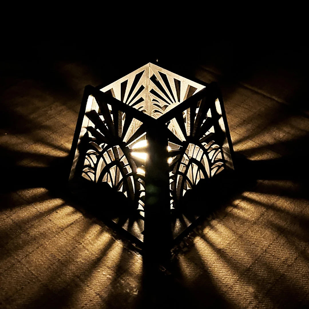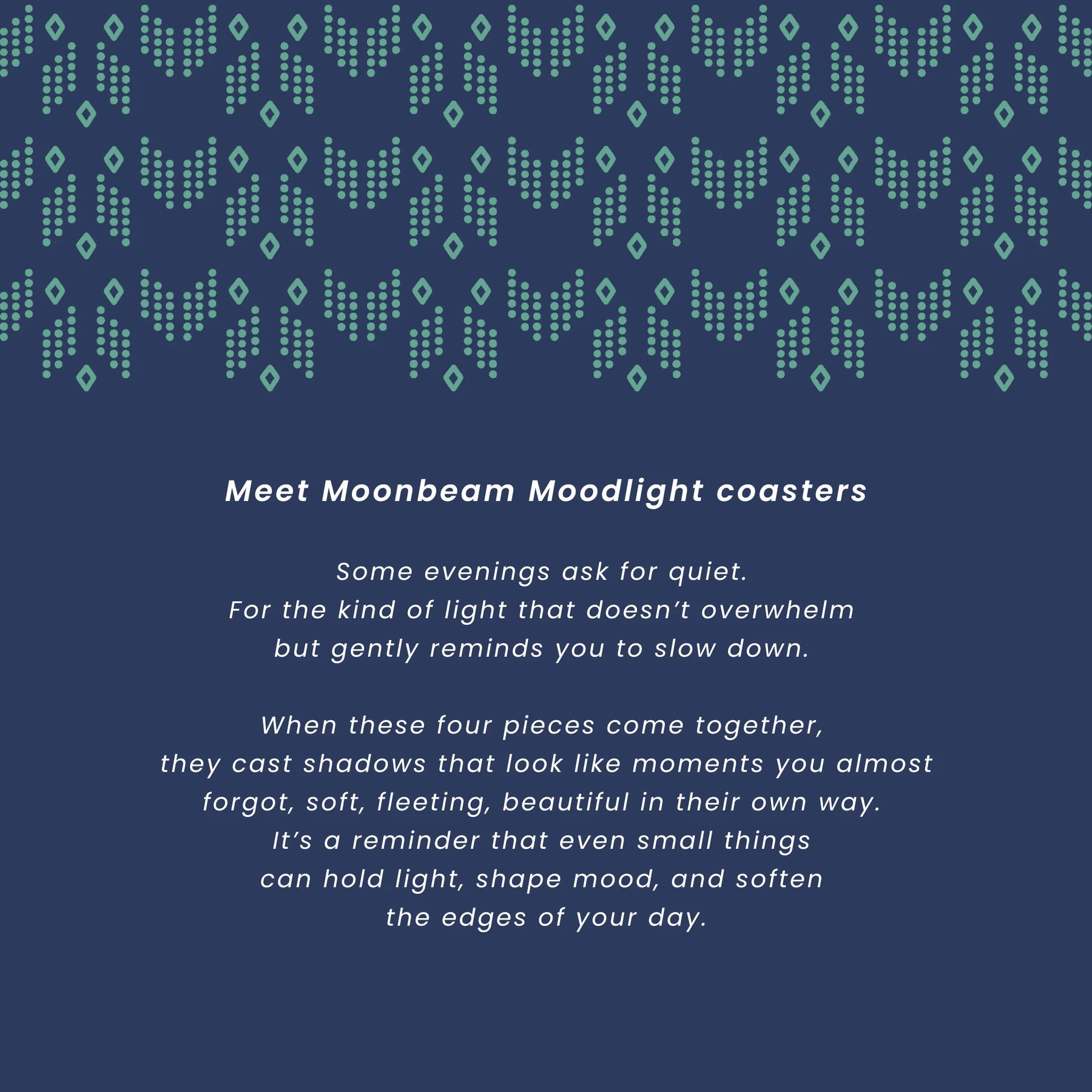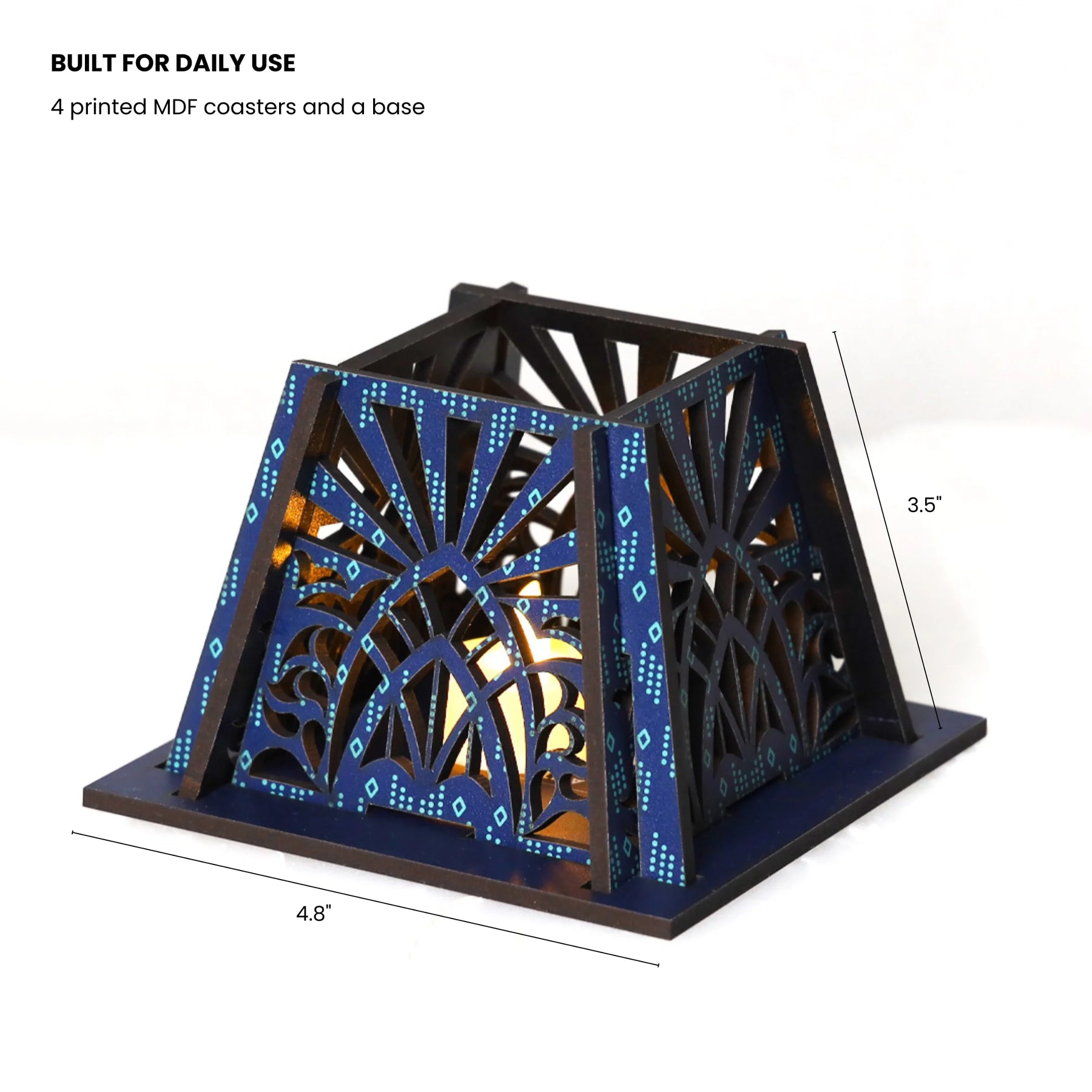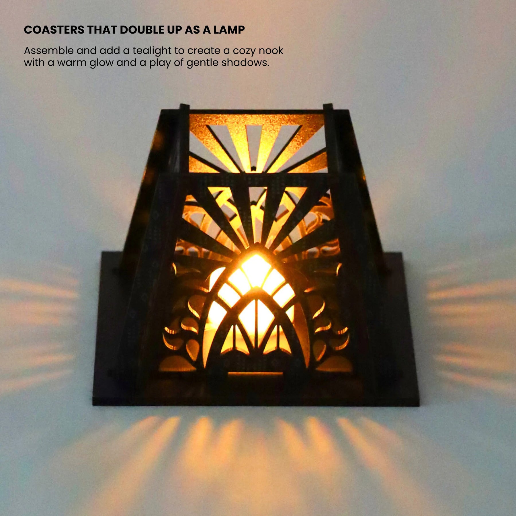 A set of four printed coasters that come together to form a small lamp, for nights that need a soft glow, gentle shadows, & a moment that feels entirely your own.