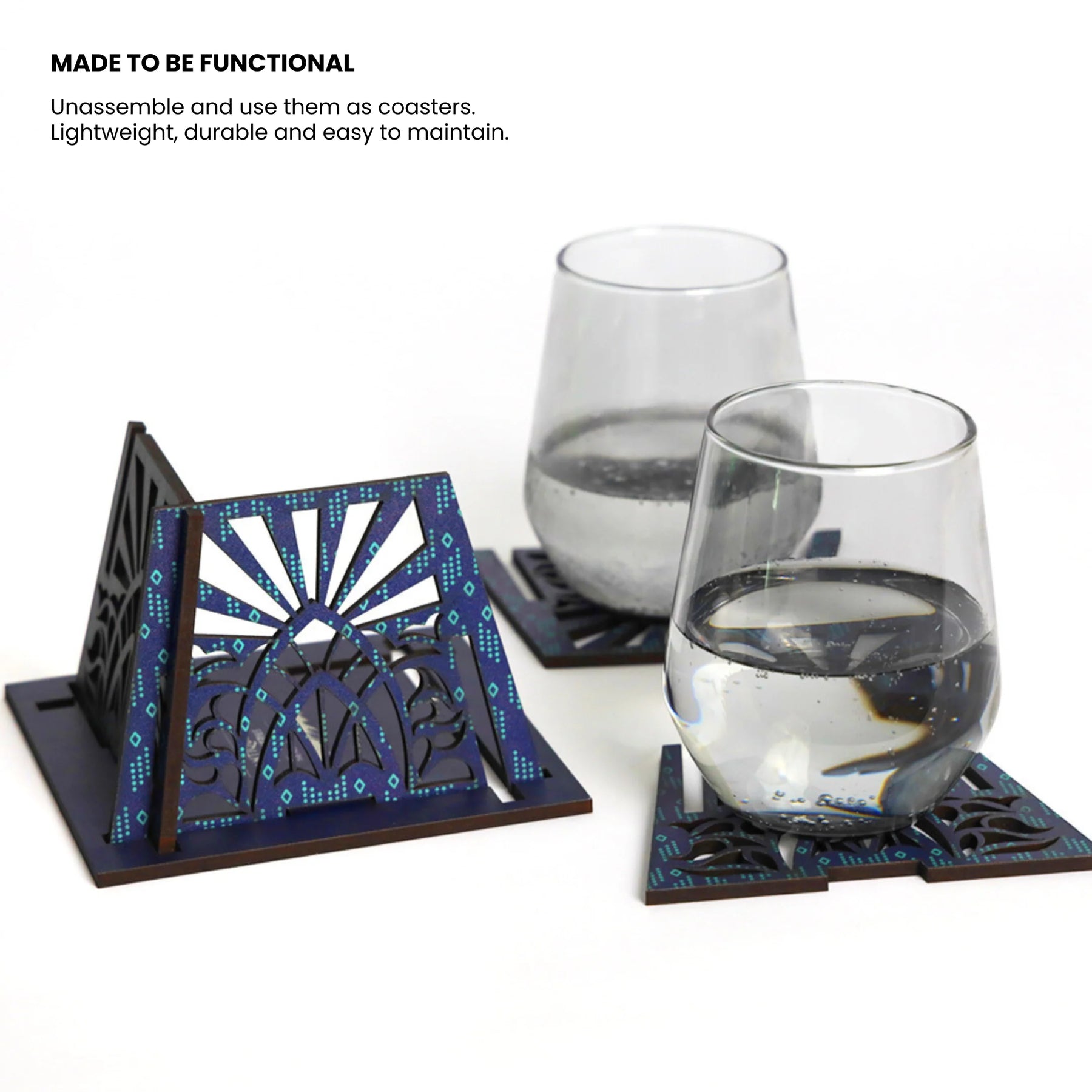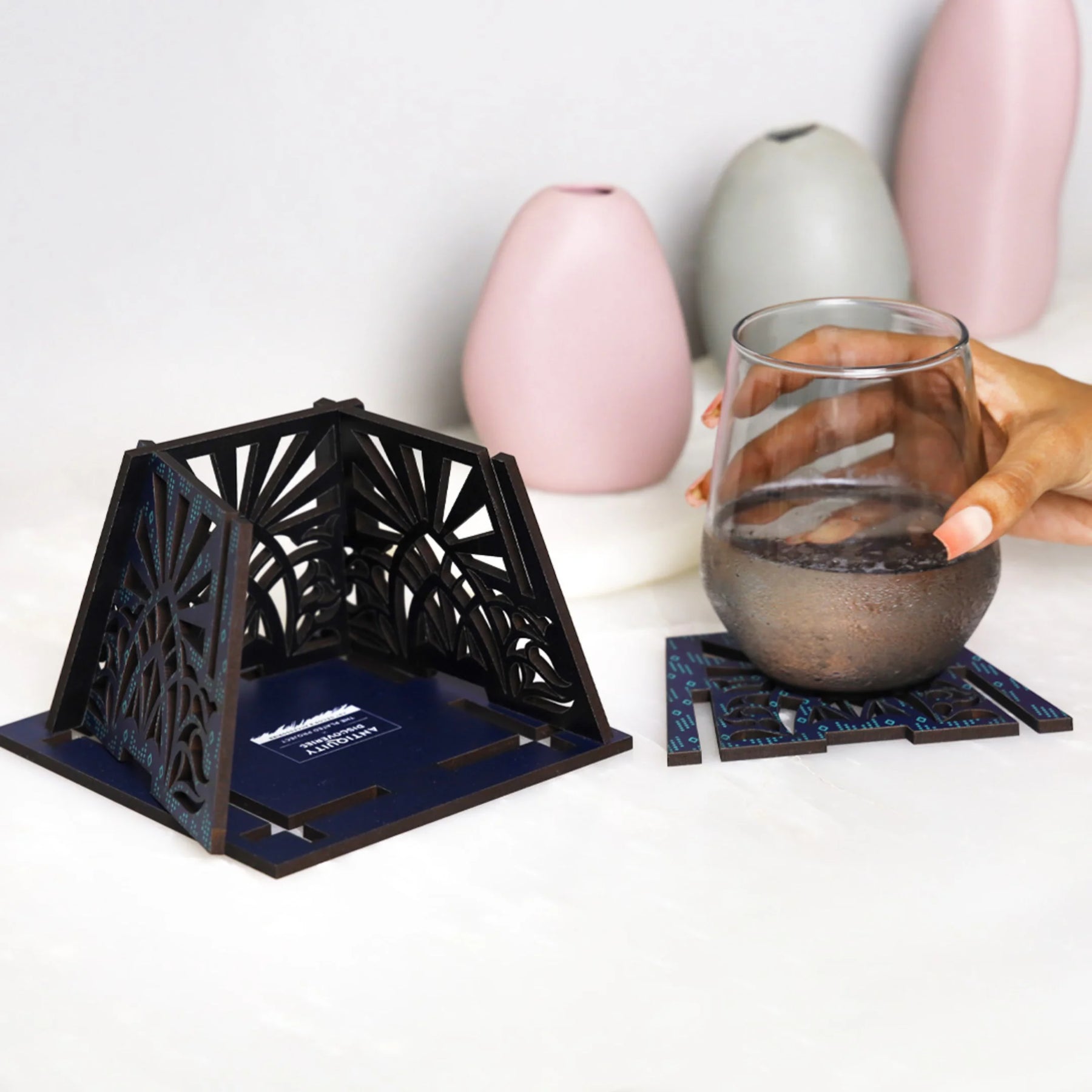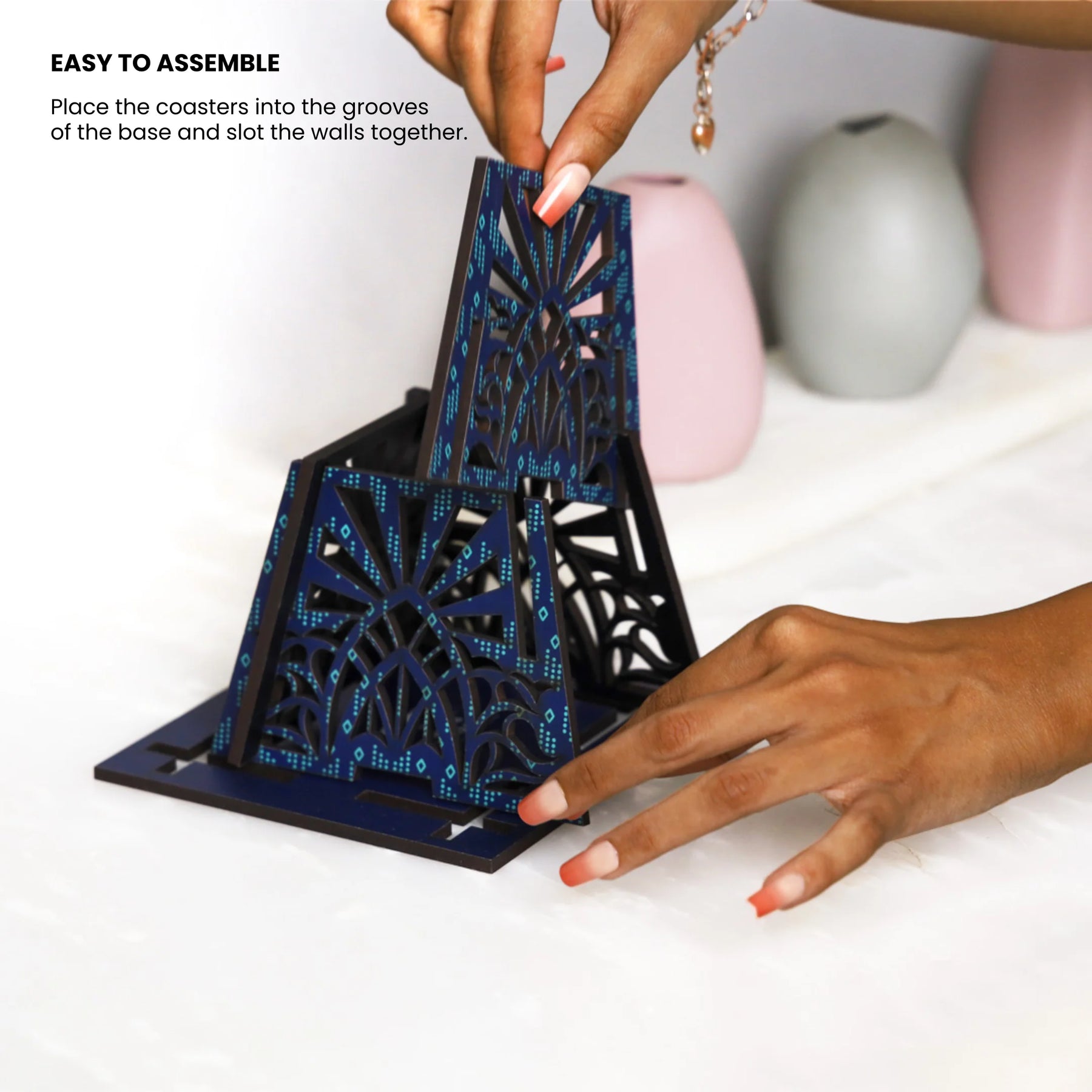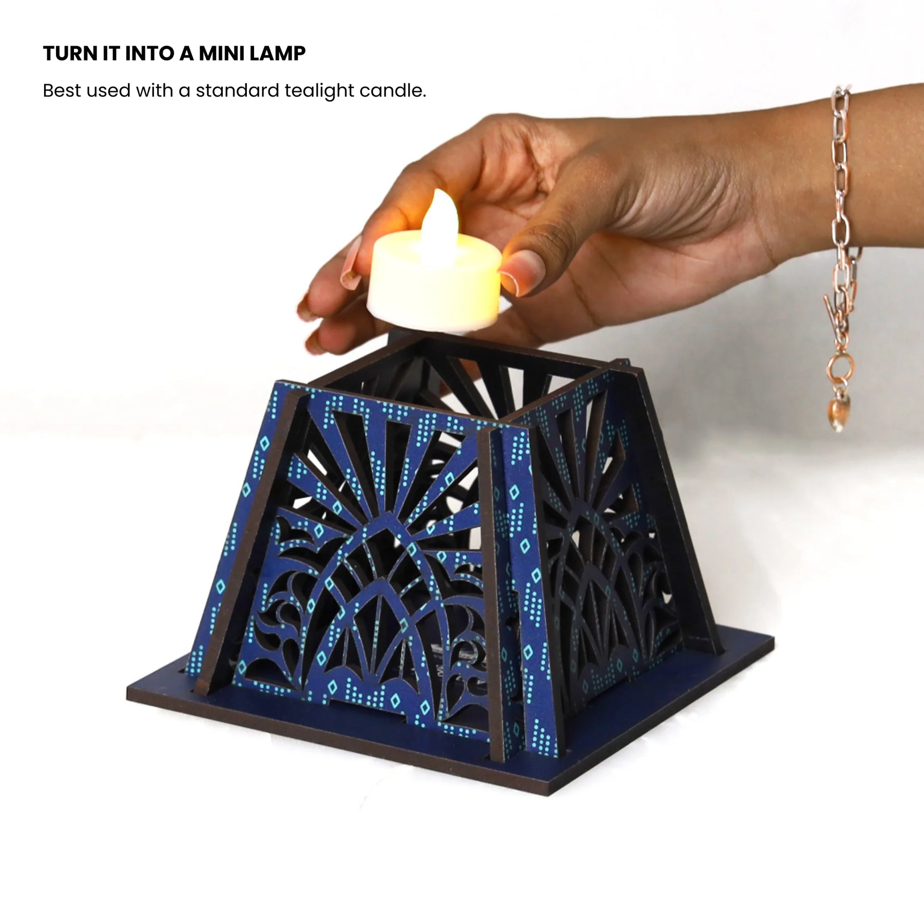 A set of four printed coasters that come together to form a small lamp, for nights that need a soft glow, gentle shadows, & a moment that feels entirely your own.