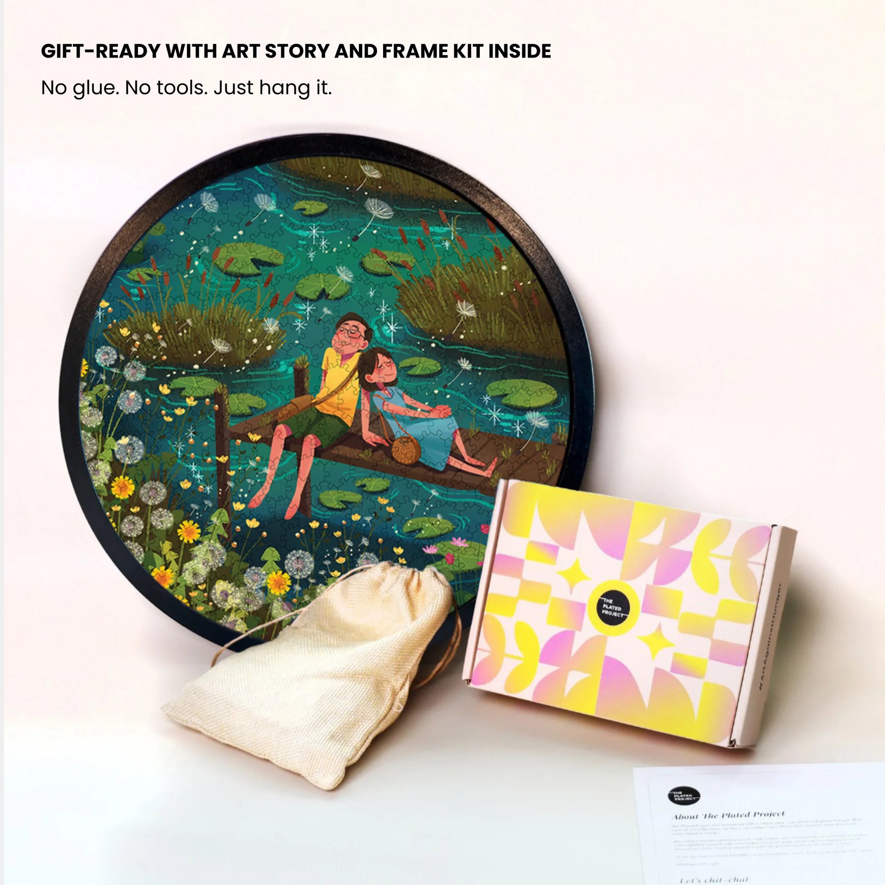 Begin by scattering the pieces onto the frame provided. Piece together the puzzle at your own pace. Once complete, adjust the transparent acrylic sheet onto the puzzle. With the pre-attached hook on the back, your decor puzzle is now ready to be showcased on your wall. The Puzzle Postcards also come with a desk stand so you can flaunt them as a showpiece as well.
