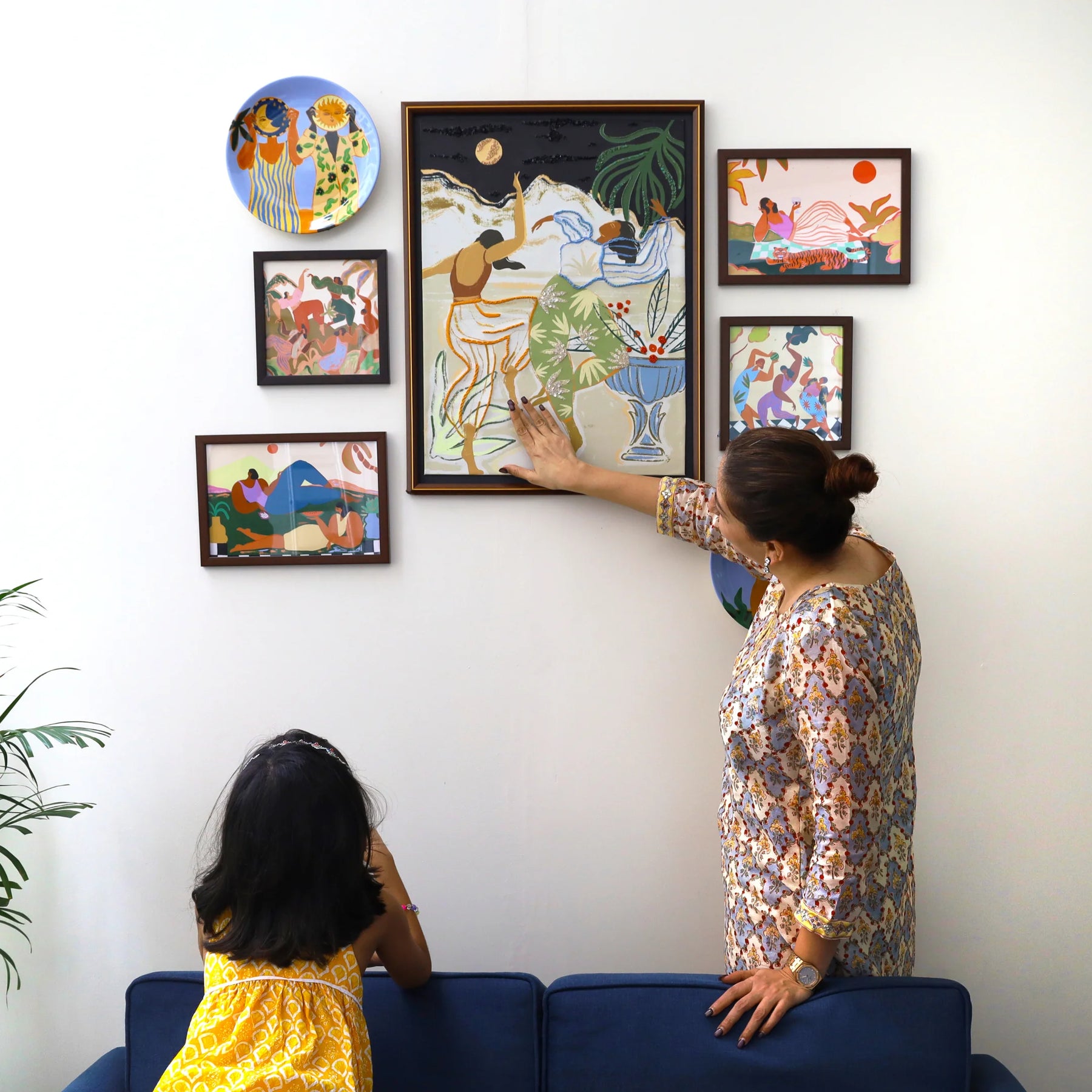 A gallery set that dances on your walls. Circles of Joy is a vibrant mix of enamel-finished steel and archival prints, crafted to capture celebration, togetherness, and the art of living in colour.