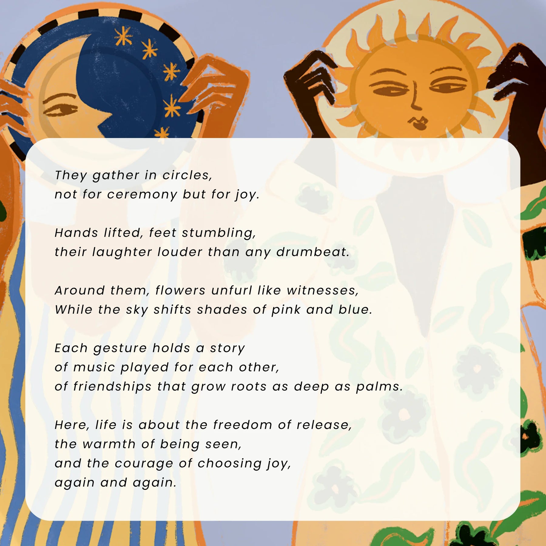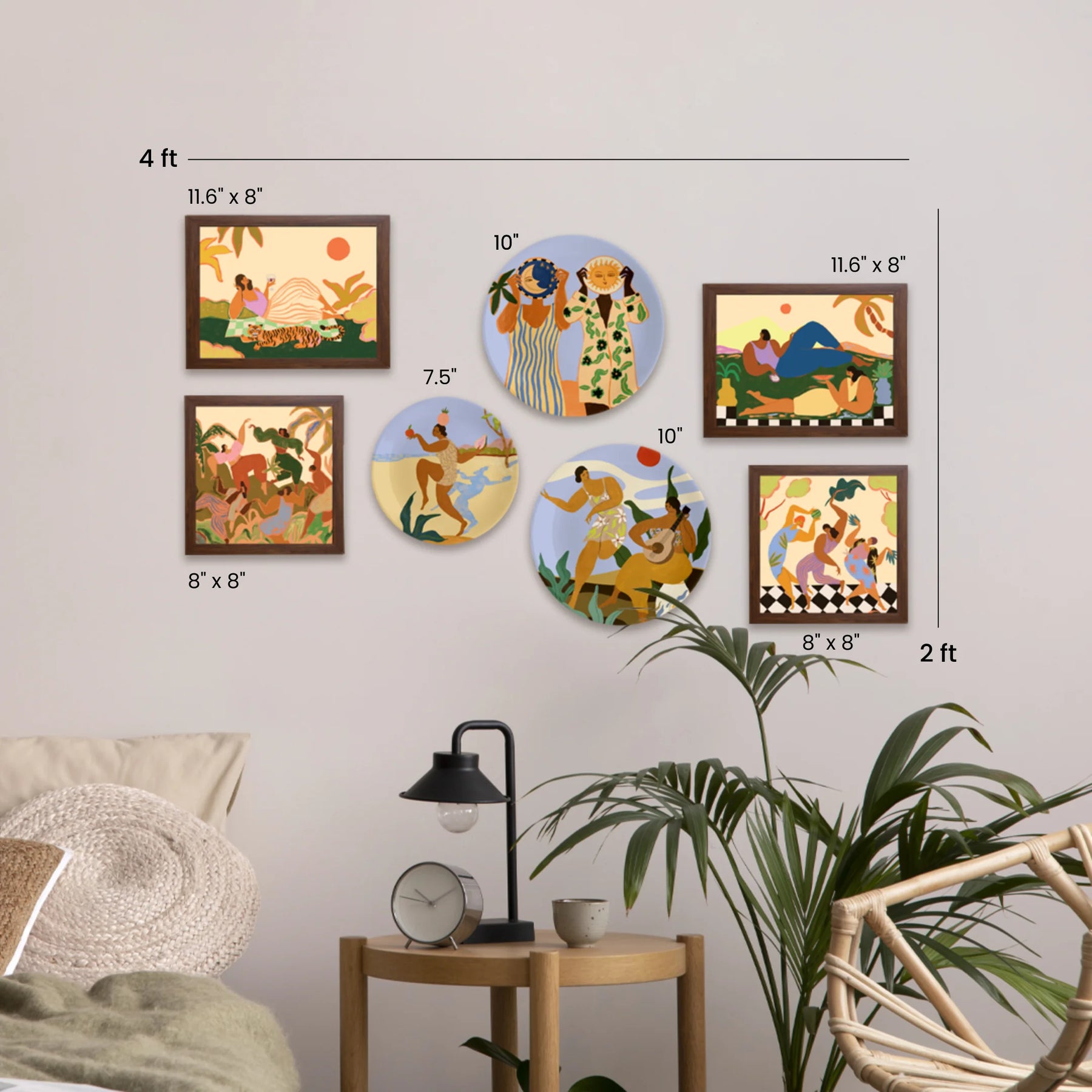 There are moments that refuse to stay small, music spilling into streets, laughter echoing late into night, and friendships that feel like endless summers. Circles of Joy gathers these moments into a gallery wall set that is playful, bold, and alive with movement.