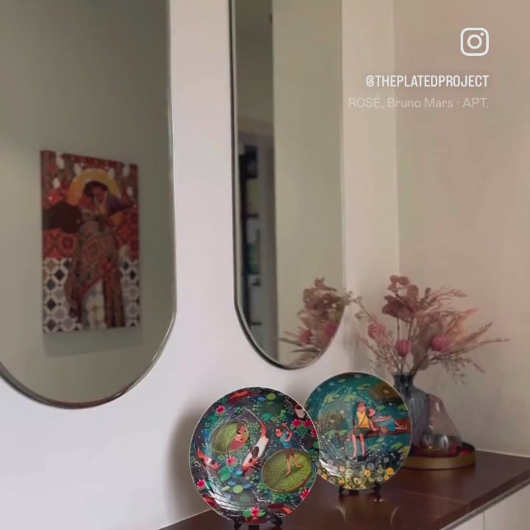 "We have different collections of art plates. While some are digitally printed, some are hand-painted. Our regular artplates come in 3 sizes 5 inches, 7.5 inches & 10 inches. Our exclusively crafted Red Dot collection comes in round or squaricle format & is exclusively produced on Germany sourced wares. These are available in the 10 inch size & each plate is serial numbered on the verso. Our handpainted collection is a rare, limited edition range that is produced in small batches & is created in collaboration with rural artisans. The sale of each piece pays an artist. "