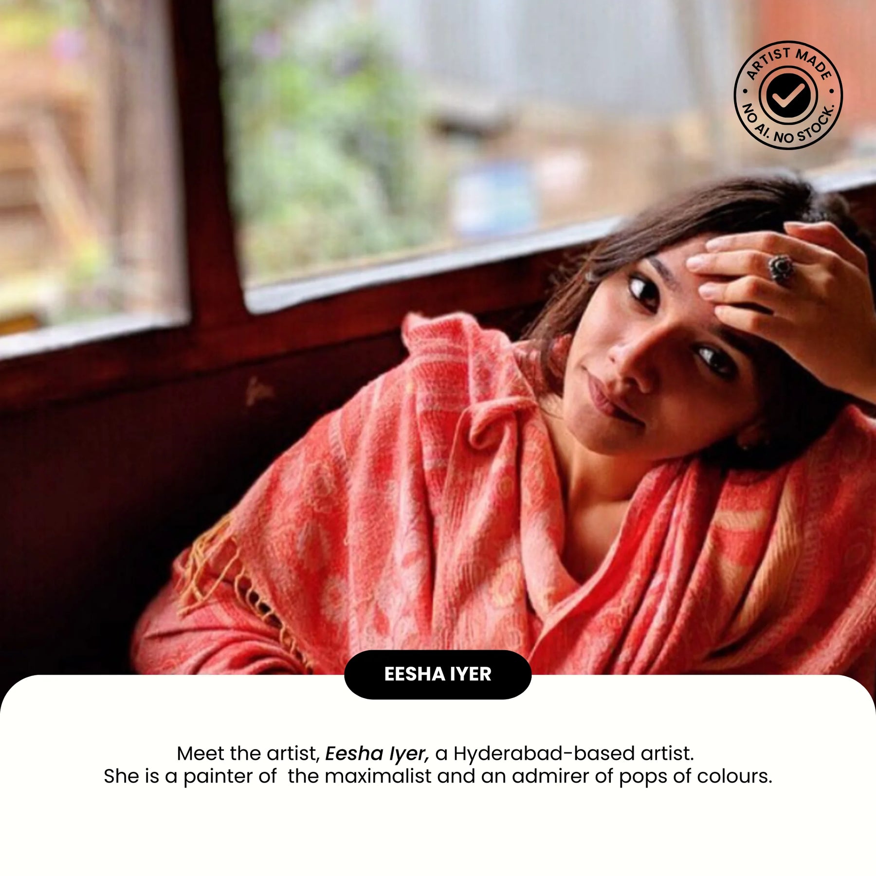 Designed by Eesha Iyer, this piece pays tribute to the unspoken companionship between women and the timeless presence of the sea, a Goddess who listens without judgement and blesses without favour. A soulful piece for coastal corners, culture-rich walls, and deeply meaningful gifting.