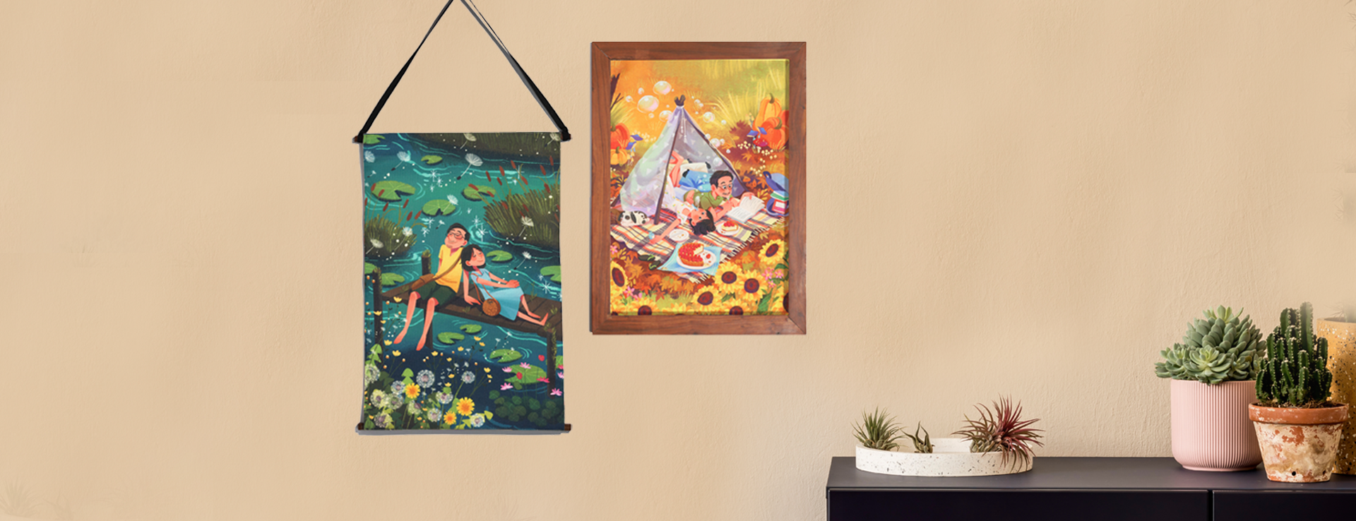 Presenting reversible fabric wall art. Transform the look of your walls with just a flip.