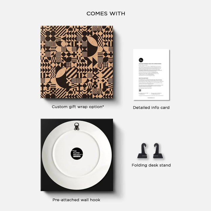 It’s part art installation, part conversation starter. Style it as a full gallery or mix-and-match through your home — and yes, you can personalise the back of each plate with a name, date, or cryptic quote (bonus points for drama).