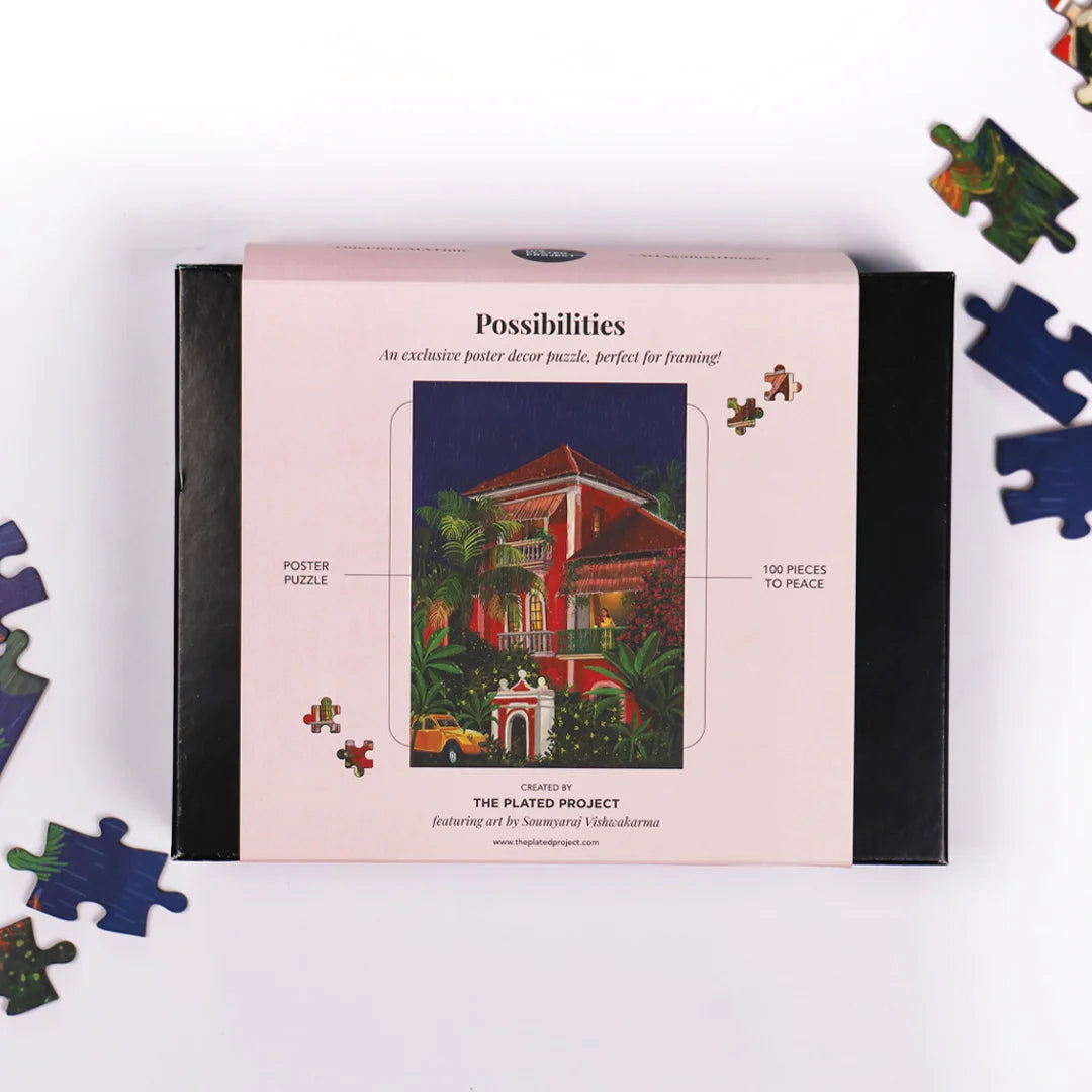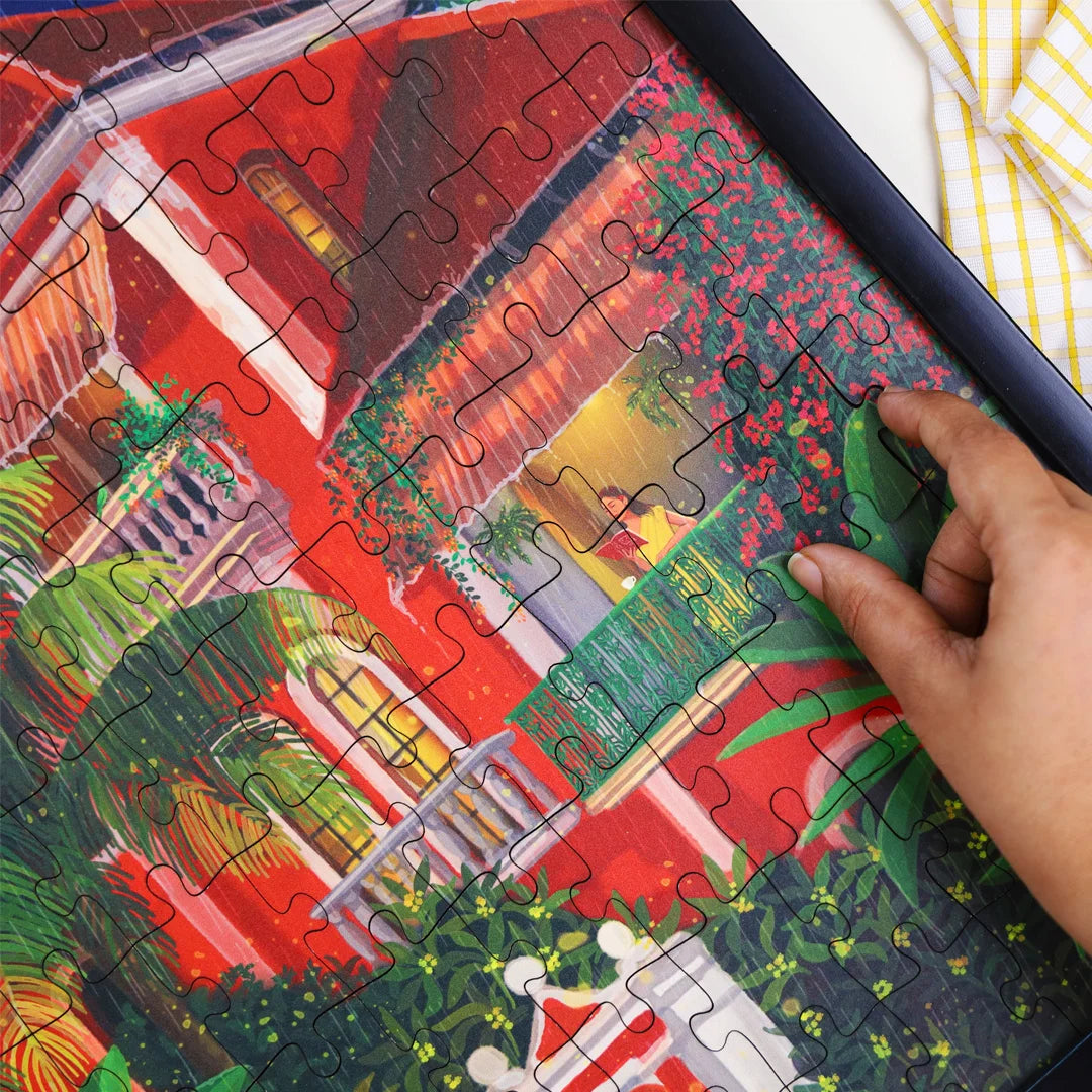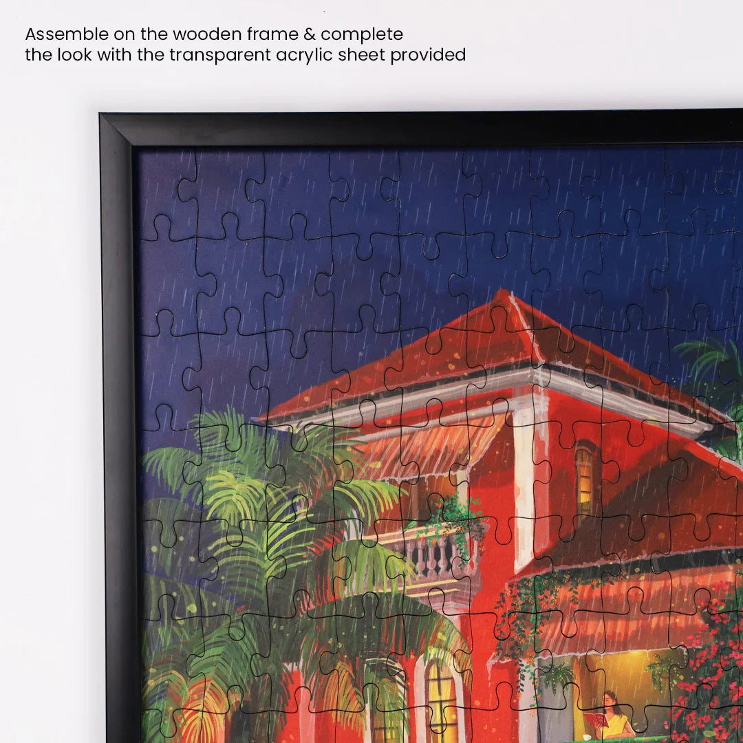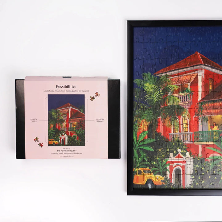 Begin by scattering the pieces onto the frame provided. Piece together the puzzle at your own pace. Once complete, adjust the transparent acrylic sheet onto the puzzle. With the pre-attached hook on the back, your decor puzzle is now ready to be showcased on your wall. The Puzzle Postcards also come with a desk stand so you can flaunt them as a showpiece as well.