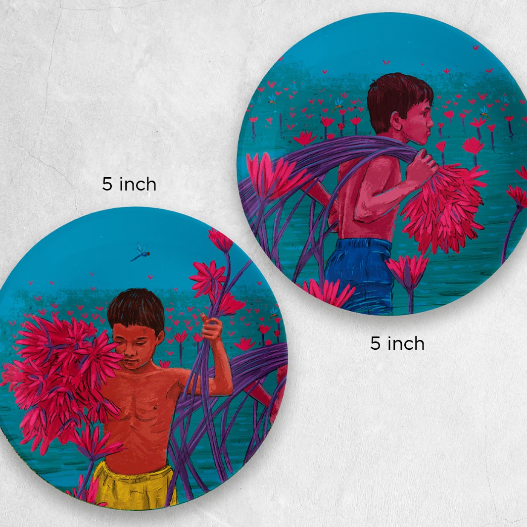 A limited-edition decor plate set that captures the poetry of stillness — fuchsia skies, lotus hearts, and that quiet kind of peace you only find in a breeze or a long exhale.