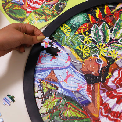 For the wild-hearted, the overthinkers, or the duo that sheds expectations like autumn leaves. This 300-piece circular puzzle is your secret hideaway — and your next wall moment.