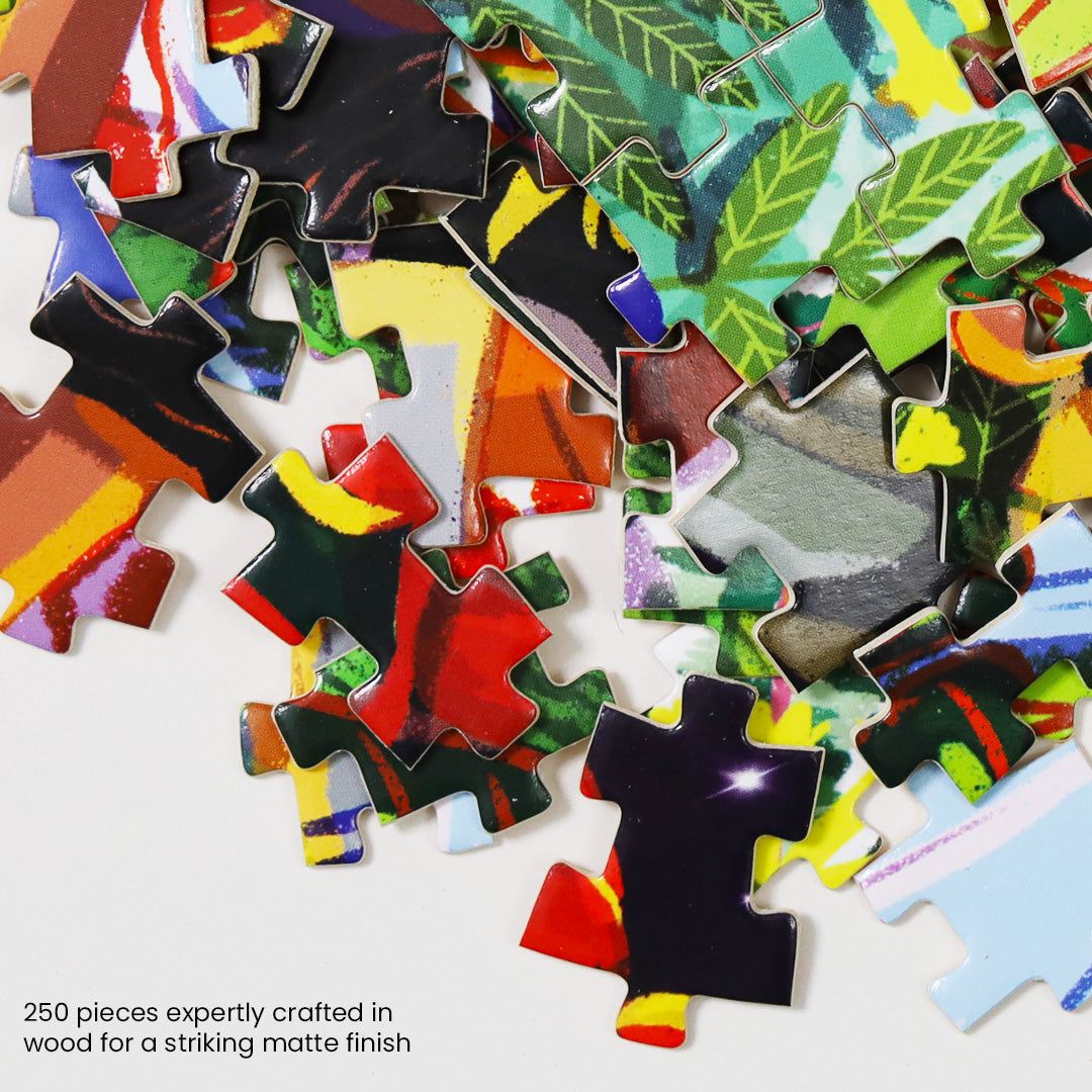 It’s a puzzle you can grow with. Piece by piece, it becomes a leafy memory — one that unlearns, reconnects, and rests on your wall like a secret path back to yourself.